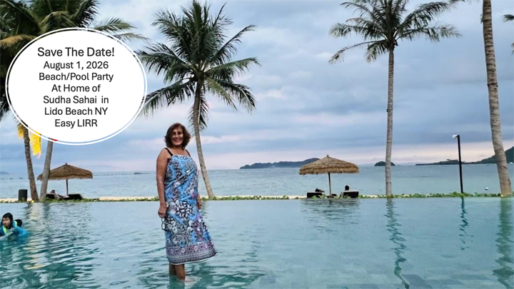 SAVE THE DATE: The New York Chapter will meet on Saturday, Aug. 1, for a beach/pool party at the home of Sudha Sahai in Lido Beach, New York (easy access via Long Island Rail Road).